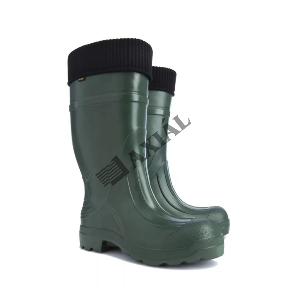 A csizma színe zöld. Anyaga strapabíró EVA kopolimer, amely jó szigetelőként működik.
